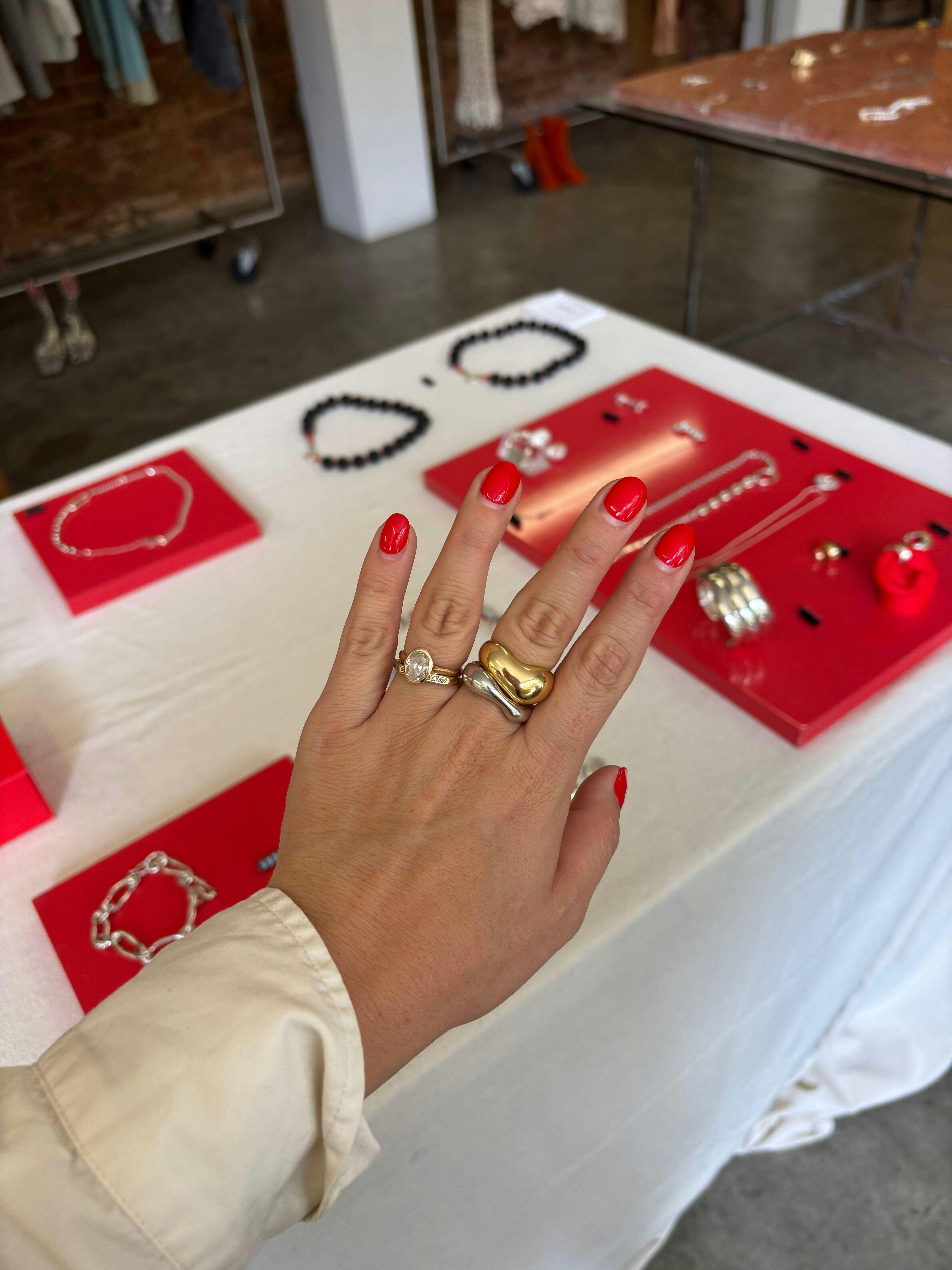 Cloud ring is inspired by Anish Kapoor's famous Cloudgate sculpture. Cloud ring effortlessly wraps around the finger. The hard metal renders itself fluid and subdued through the organic curves of the Cloud ring. A minimal yet bold statement ring for art and architecture lovers.